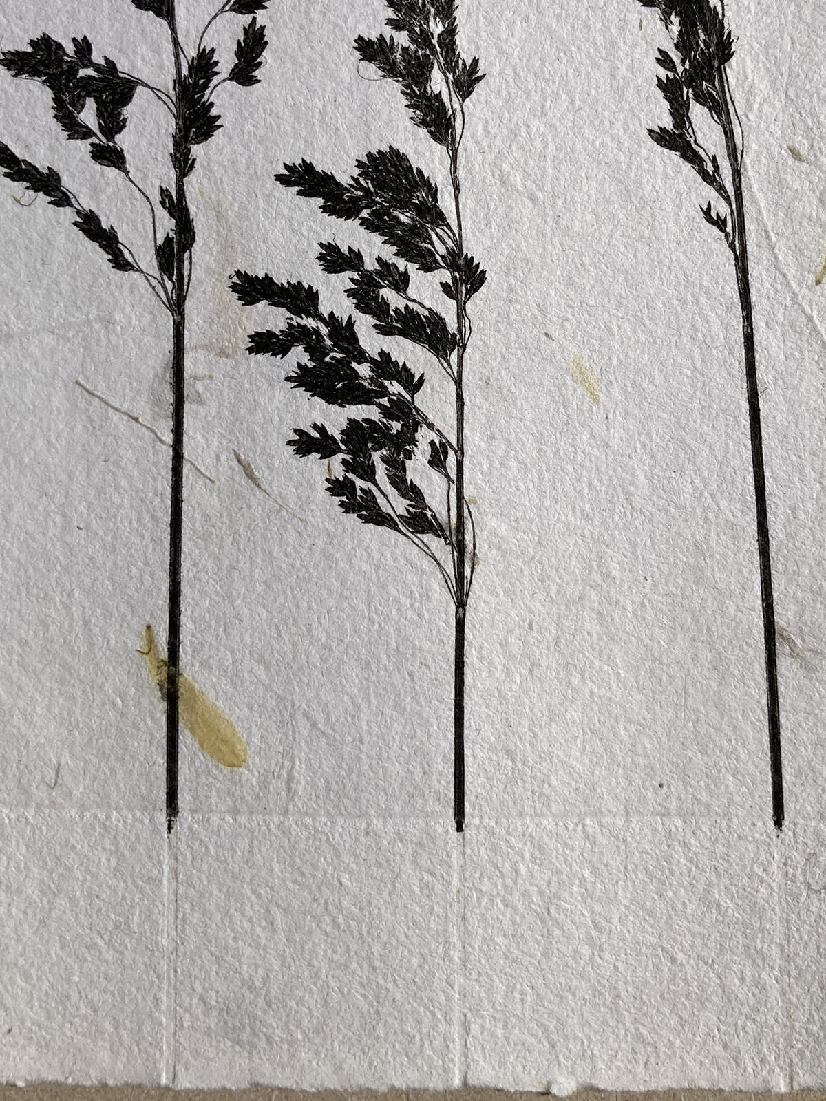 Matériaux : Encre taille douce sur papier artisanal aux inclusions de fleurs
