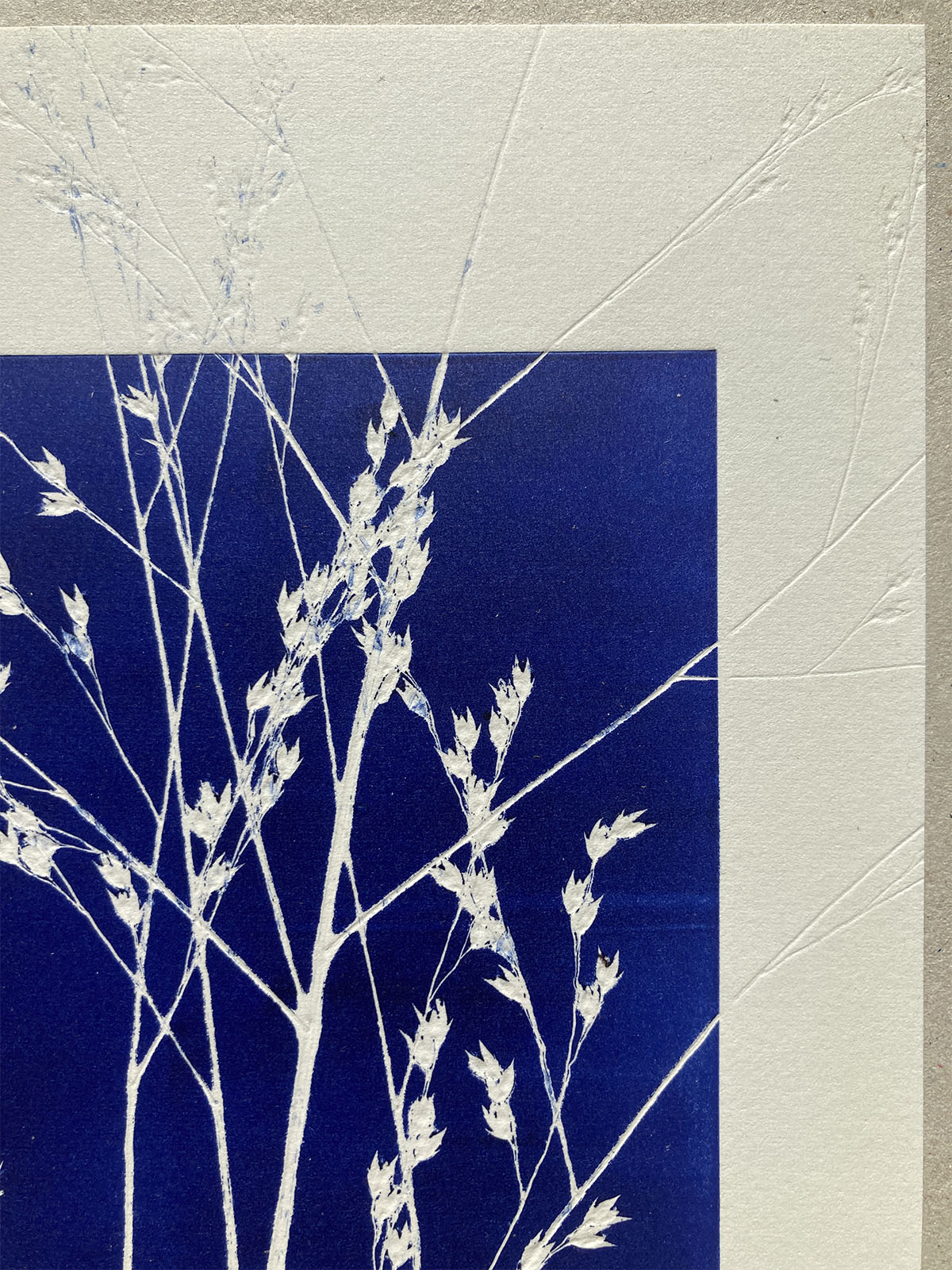 L’étape suivante consiste à déposer la ou les plantes choisies sur une plaque préalablement encrée, une feuille de papier recouvre l’ensemble. Enfin, le passage sous la presse d’héliogravure permet d’obtenir ce qu’on appelle l’empreinte négative.