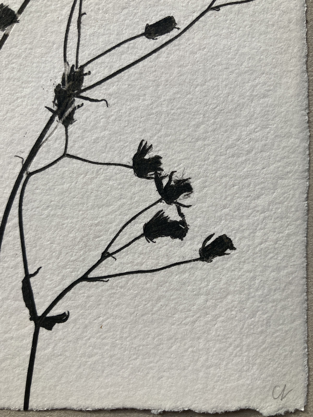 L’étape suivante consiste à déposer la ou les plantes choisies sur une plaque préalablement encrée, une feuille de papier recouvre l’ensemble. Enfin, le passage sous la presse d’héliogravure permet d’obtenir ce qu’on appelle l’empreinte négative.
