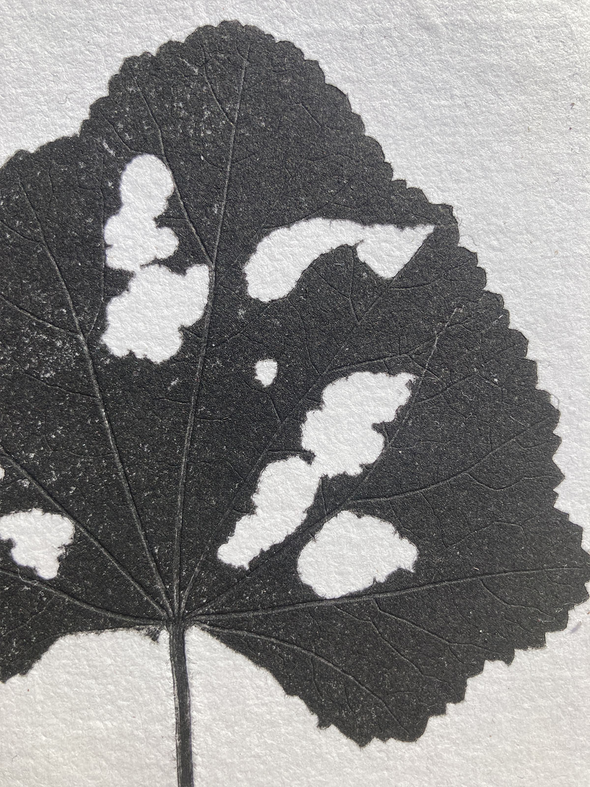 Pour cette série d’impressions végétales, je me concentre sur le feuillage de certains arbres ou plantes qui ont attiré mon attention par leur singularité, qu’ils soient marqués par leur processus de décomposition, grignotés par les insectes ou encore tombés et piétinés. J’ai voulu figer ces moments afin d’en capturer toute la beauté, et montrer qu’en prenant le temps d’observer, on peut saisir la splendeur qui se dissimule même dans ces processus d’altérations.